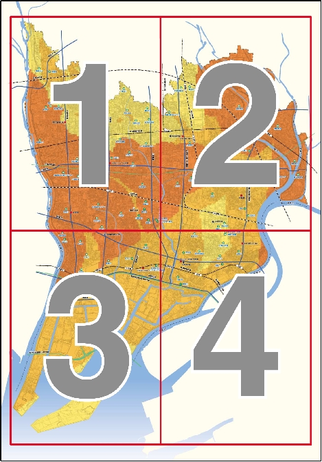 上図に示す市域の区分ごとに、以下よりそれぞれの拡大図をご覧いただけます。