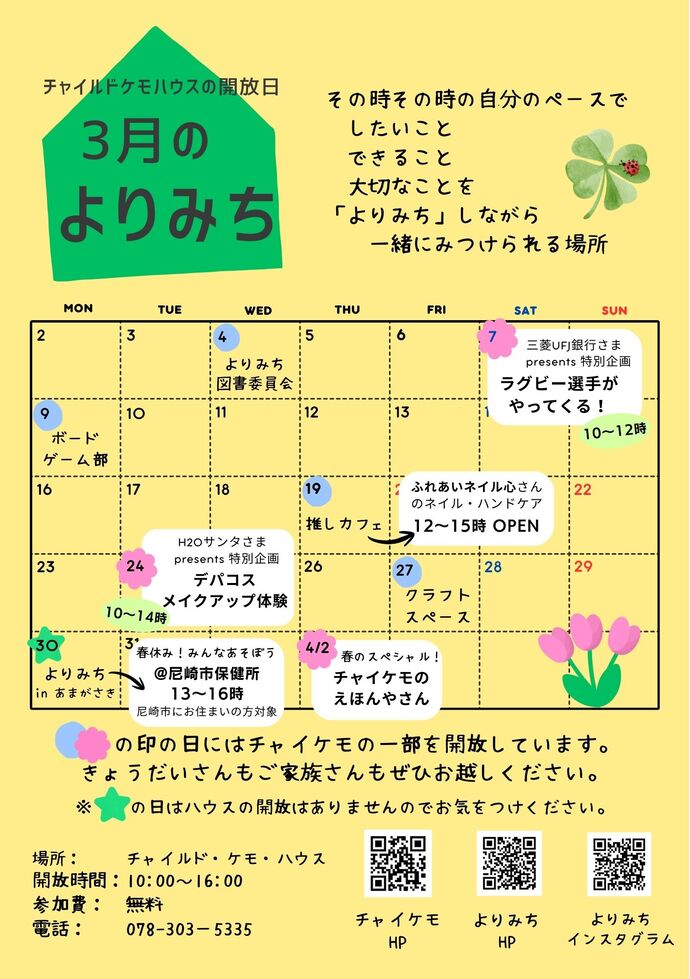 神戸のチャイルド・ケモ・ハウスで行っている、病気のあるお子さんやご家族のための居場所「よりみち」。