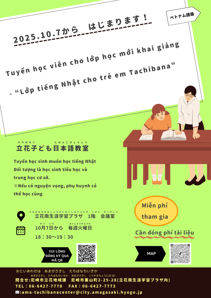 立花子ども日本語教室 生徒募集(たちばな こども にほんご きょうしつ せいと ぼしゅう)