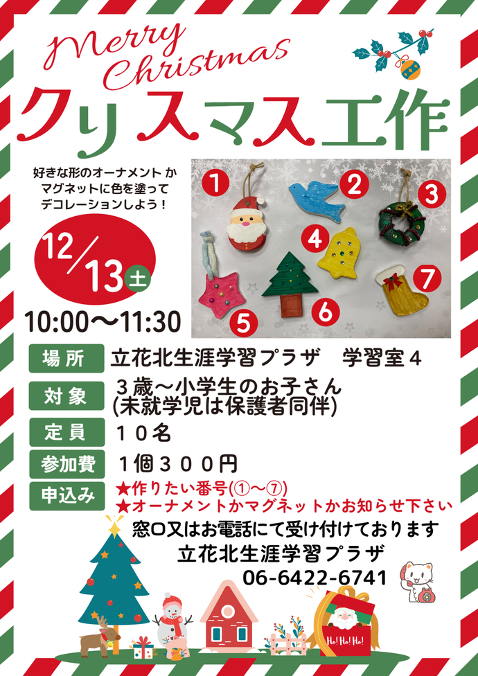 好きな形のオーナメントかマグネットに色を塗ってデコレーションしよう!