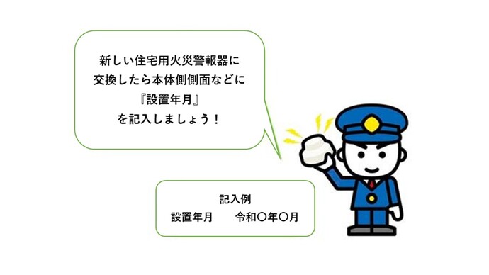 住宅用火災警報器を設置した際に記入した「設置年月」、または、本体に記載されている「製造年」を確認してください。