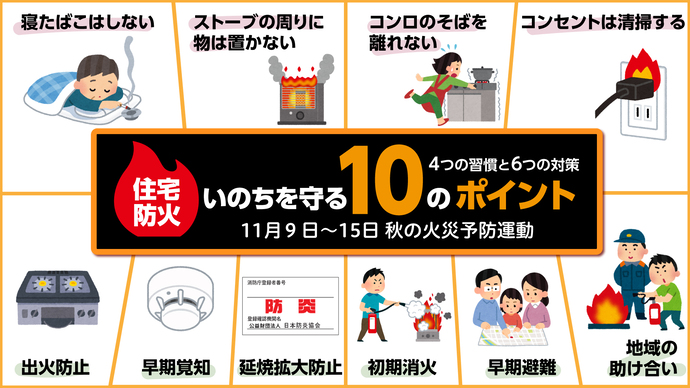 「住宅防火 いのちを守る 10のポイント」を実践しましょう!