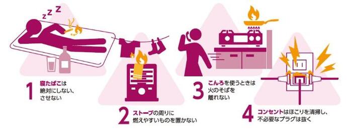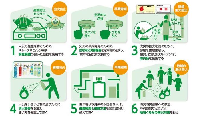火災を発生させない、また、万が一発生しても被害を最小限にとどめるために、