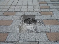 - 舗装に深さ3cm程度の段差ができており、歩行者や自転車、バイクが避けていたり、横断歩道上など歩行者がつまずきそうな場所にある場合