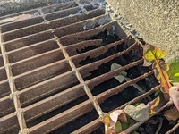 - ますぶたグレーチングの格子が錆びて折れ始めている。