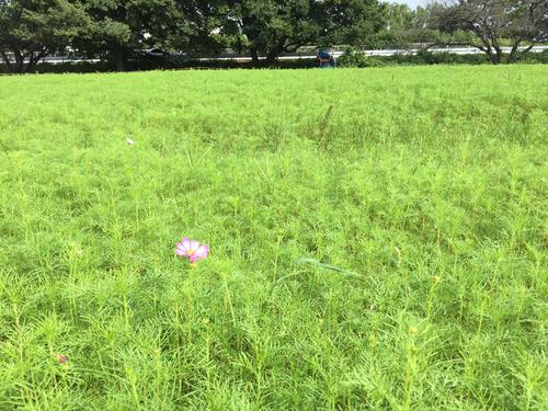 7つのコスモス畑から、新芽がいっせいに生えてきています。