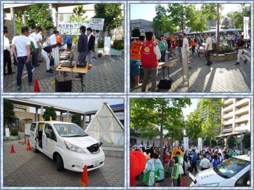 阪神尼崎駅前も、JR尼崎駅前同様、電気自動車から電源を取り、パソコン・プロジェクター・音源を使用し、