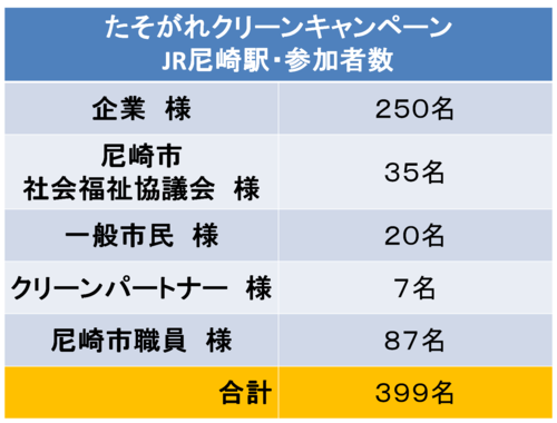 本市では、市民の方々や事業者の皆さまと行政との協働により、美しいまちづくりを目指す取組みを積極的に行ってきており、本年度は、よりたくさんの方々にご参加頂けるように、社会福祉法人尼崎市社会福祉協議会との共催や、PC・プロジェクターを使用し、ポイ捨て防止に係る啓発紙芝居「あっくんとキレイな花」及び昨年度の活動実績等を映すなど、新たなことにも取組みました。今後も、このような活動を引き続き実施してまいりますのでご協力いただきますよう、よろしくお願い申し上げます。