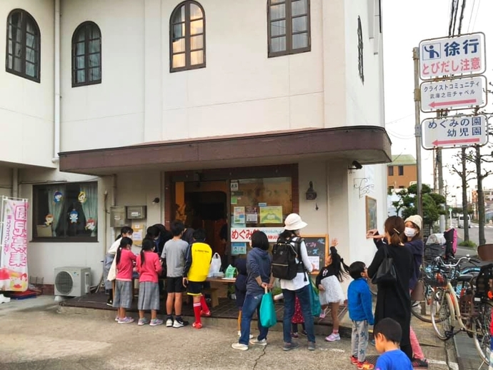 武庫庄小学校では低学年、中学年、高学年ごとに時間を分けて開催し、武庫幼稚園さんは園児がフラフープを持って入退場をすることで自然と距離を取れるようにしていましたよ。