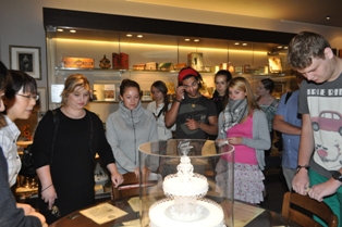 近松公園視察後、田能資料館で火おこしを体験しました。アウクスブルクの街並みを再現したショッピングセンター「つかしん」で「アウクスブルクコーナー」を視察し、塚口サービスセンターで「平成24(2012)年度尼崎市青年使節団アウクスブルク市訪問写真展」を鑑賞する等アウクスブルクを思い出す場所が多々ありました。また、高校で書道を体験し、高校生と交流する楽しいひと時を過ごしました。