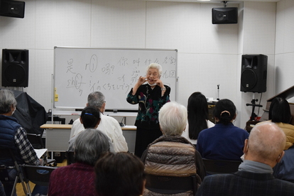 11月18日に小田南生涯学習プラザにて「はじめてでも大丈夫 中国語で歌おう」を開催しました。当日はタイトルのとおり、はじめて中国語に触れる方でも安心して参加いただけるよう、講師の張文乃先生が、日本人にも馴染みのある日本と中国の童謡6曲を選曲下さり丁寧に指導下さいました。また参加者の方々も始終和やかな雰囲気の中、ピアノに合わせて楽しく歌声を響かせました。当日は日本人だけではなく中国人の方も参加されて、故郷の歌を皆さんと一緒に楽しまれました。