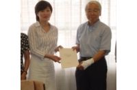 増田総務大臣に対し、白井市長より「中核市指定の申出」を行う。